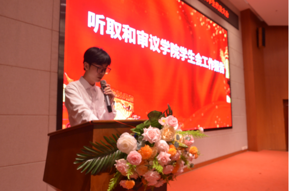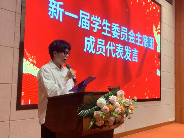 新一届学生委员会主席团成员代表发言,承诺将立足学生需求,搭建沟通桥梁,积极开展丰富多彩的校园活动,服务学生全面发展。