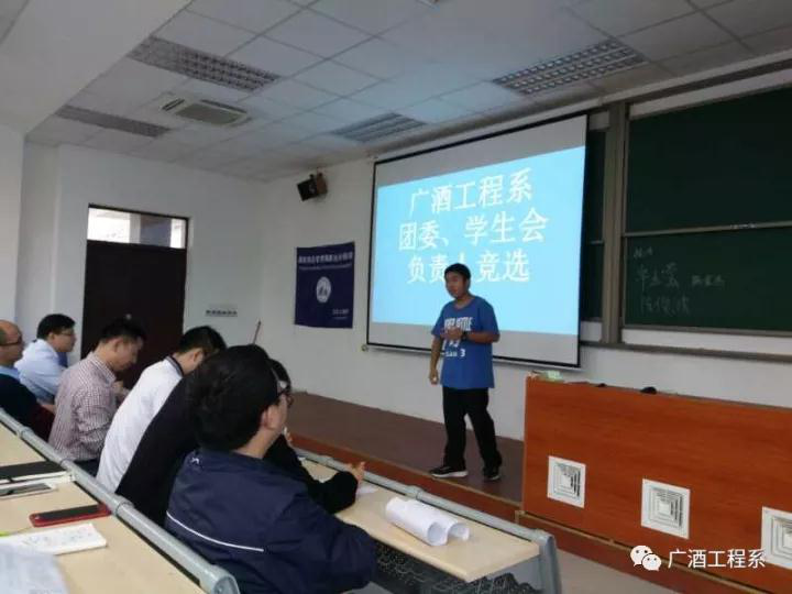 广酒工程系于2017年11月29日在酒管楼C103教室组织系团委、学生会的竞选活动。